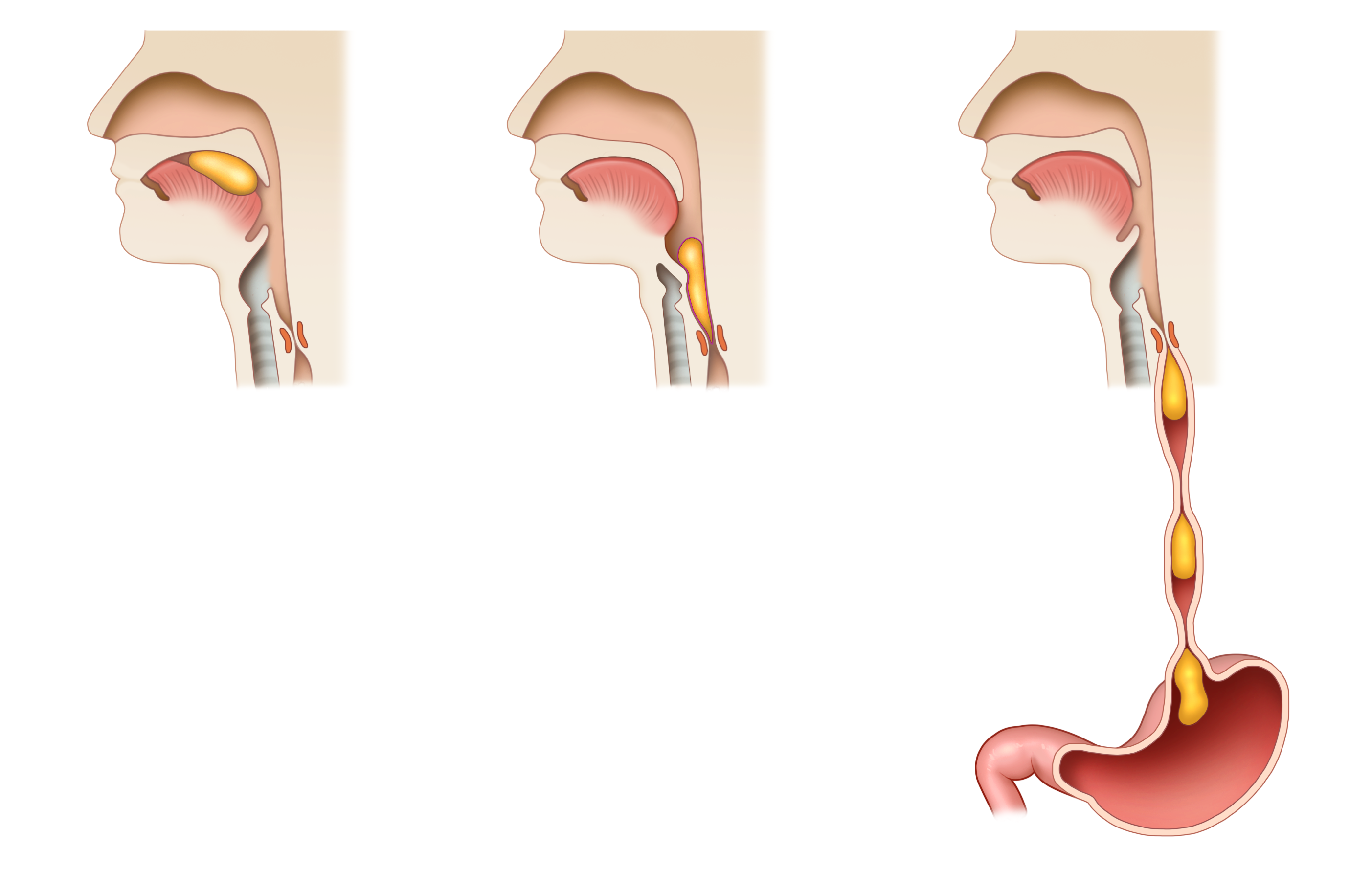 식도는 인두로 들어온 음식물을 연동운동을 통해 위로 전달해주는 역할을 합니다. 식도의 양쪽 끝은 조임근이라는 근육에 의해 닫혀있는데 음식물이 인두로 들어오면 상부조임근이 이완해서 음식물을 받아들입니다. 그 후 조임근은 바로 닫혀 음식물이 역류되지 않도록 합니다. 음식물이 식도를 따라 아래로 내려가면 하부식도 조임근이 열리면서 음식물이 위로 들어가고, 이후 하부식도조임근은 닫혀 위의 내용물이 식도로 역류되는 것을 방지해줍니다.