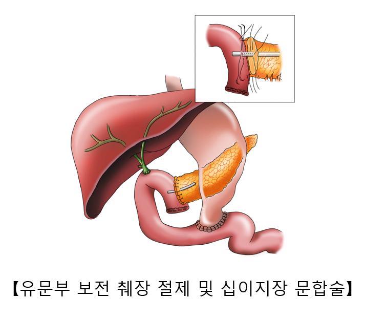췌장은 해부학적으로 두부(머리 부분), 체부(몸통 부분), 미부(꼬리 부분)로 나누어집니다. 두부는 담관(담즙의 배출 통로)과 연결되어 있어 두부에 췌장암이 발생하면 담관이 막히면서 황달이 나타날 수 있습니다. 미부는 비장과 연결되어 있습니다. 소장과 대장 일부에 혈액을 공급하는 상장간막동맥은 대동맥으로부터 분지되어 췌장과 인접해 주행합니다.