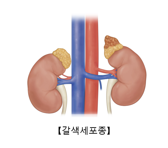 갈색세포종은 주로 부신수질에서 발생하는 종양을 말합니다. 부신 이외에 교감신경이 분포되어 있는 대동맥 주위와 방광 등에서 발생하기도 합니다. 갈색세포종은 양성 및 악성 여부를 진단하기 어렵습니다. 진료상으로 종양이 하나의 장기에 국한된 경우를 양성으로 판단하며, 임상적으로 주위의 장기로 침윤하거나 림프절, 뼈, 폐 등으로 전이된 경우를 악성으로 진단합니다.
