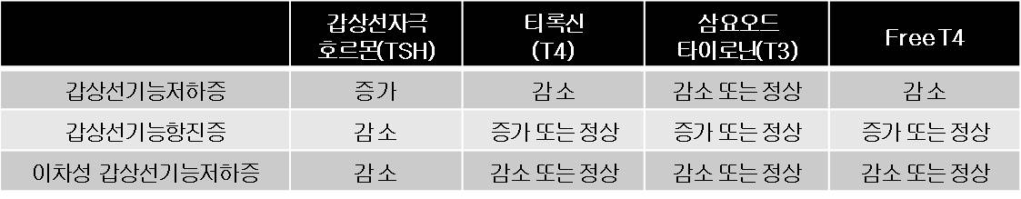 갑상선은 갑상선호르몬을 만들어 우리 몸의 대사를 촉진하고 기능을 유지시키는 역할을 합니다. 우리 몸에서 갑상선 호르몬이 감소하면 뇌하수체에서 갑상선자극호르몬(TSH)이 생산되어 갑상선 호르몬인 티록신(T4)와 삼요오드타이로닌(T3)를 분비하게 됩니다.